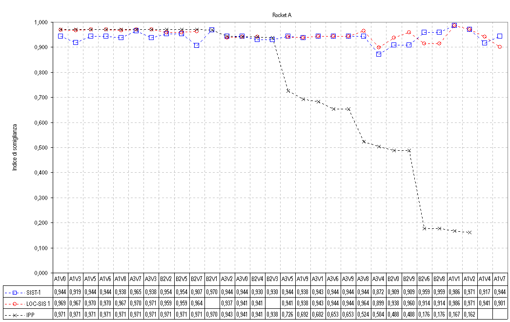 Il grafico dimostra che le soluzioni elaborate con le tecniche sviluppate dal gruppo di ricerca (LOC-SIS e SIST) risultano molto simili a quella di riferimento, come desiderato.